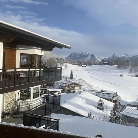 入住蒂罗尔-泽费尔德Haus Helvetia公寓的客人可以在露台上发发呆,步行25分钟即可抵达托尼-西罗斯-奥林匹克滑雪跳台。